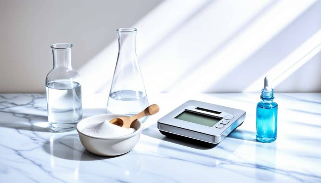Iniziate versando lentamente l’acqua demineralizzata nella ciotola. Pesate con precisione il bicarbonato di sodio e l’acido citrico e aggiungeteli all’acqua uno dopo l’altro, mescolando delicatamente con un cucchiaio o una piccola frusta. Noterete subito la formazione di bollicine: è la reazione tra l’acido e il bicarbonato che libera anidride carbonica. Non preoccupatevi, è del tutto normale e significa che i principi attivi si stanno scatenando per voi.